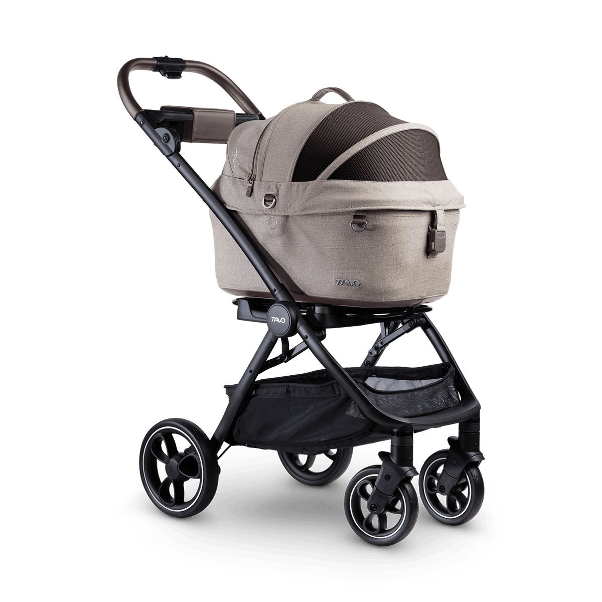 Le Système de Protection 3-en-1 pour Animaux de Compagnie de Tavo se distingue par l'harmonie parfaite entre un panier de transport confortable, une poussette élégante ainsi qu'une base sécurisée et raffinée pour véhicule. Voyagez dès à présent partout, ensemble.