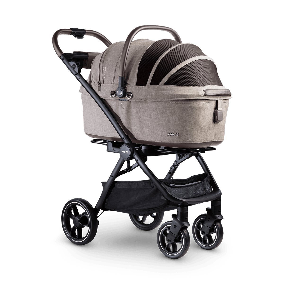 Le Système de Protection 3-en-1 pour Animaux de Compagnie de Tavo se distingue par l'harmonie parfaite entre un panier de transport confortable, une poussette élégante ainsi qu'une base sécurisée et raffinée pour véhicule. Voyagez dès à présent partout, ensemble.